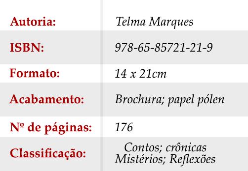 Em “Contos & Recontos”, Telma Marques nos convida a refletir sobre a vida e nossas conexões com o mundo ao nosso redor. Com uma linguagem simples e acessível, as crônicas e contos misturam o cotidiano com o sobrenatural, abordando temas espiritualistas que vão desde a importância do autocuidado até a necessidade de atenção às pessoas à nossa volta. Cada narrativa é um Reconto de personagens magníficos com dialetos muito bem explorados pela Autora, revelando muitas emoções humanas e provocando uma nova maneira de enxergar o invisível que permeia nossas relações e escolhas diárias.
