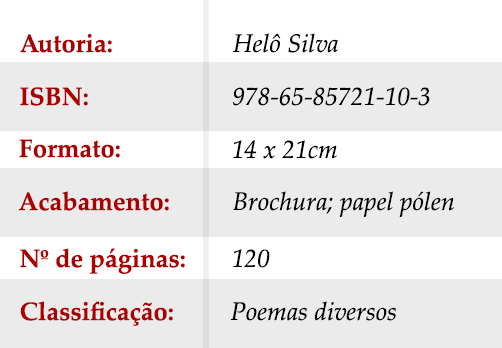 Neste enredo poético, Helô Silva nos mostra que para encontrar a si mesma, precisa olhar para dentro de si e buscar onde sua essência mais profunda está guardada. Convidamos você a embarcar de alma e coração por entre esses versos.