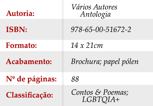 Este Projeto, tem como intuito aproximar escritores e poetas LGBTQIA+, pessoas que defendem a ideia e também aquelas que fazem parte de alguma forma, desse Movimento que tanto sofre com preconceitos em pleno século XXI. O principal objetivo aqui, é o amor em forma de versos, para dar voz e visibilidade a muitos outros sentimentos quando a sociedade nos condena e nos despreza, nos fazendo acreditar que devemos sempre esconder o nosso Verdadeiro Eu, o nosso Agir Natural e ter vergonha, porque de fato, ser LGBTQIA+ não é uma escolha, é simplesmente Ser e Estar.